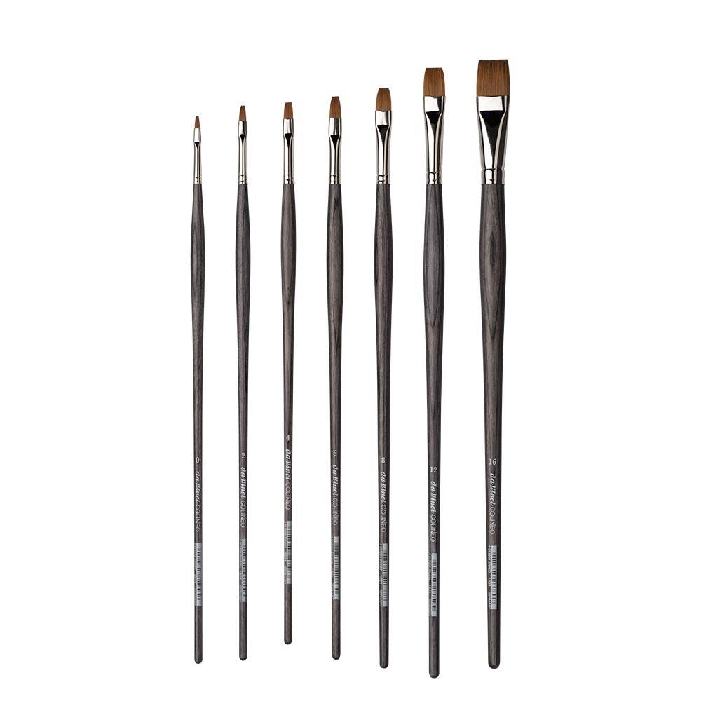 da Vinci Seri 1821, markanın profesyonel Top Acryl serisine ait uzun saplı düz kesik uçlu modeldir. Fırçada kullanılan kahverengi sentetik fiber kıllar, kalın kıvamlı boyalarla çalışırken bile mükemmel dayanıklılık ve form koruması sağlar.