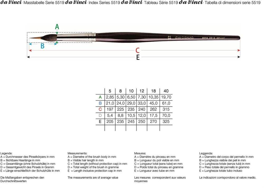 Da Vinci Kolinsky Ve Kazan Sincap Kılı Yuvarlak İnce Uçlu Çizgi Fırçası Seri 5519 No:8