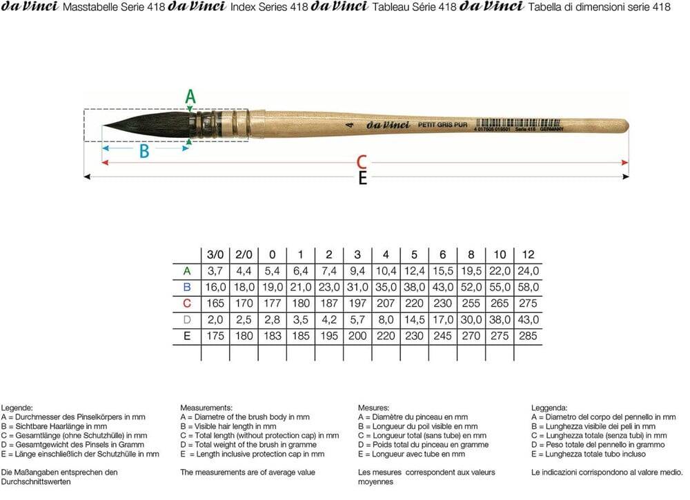 Da Vinci Petit Gris Pur Mavi Rus Sincap Kılı Yuvarlak Fransız Sulu Boya Fırçası Seri 418 No:4
