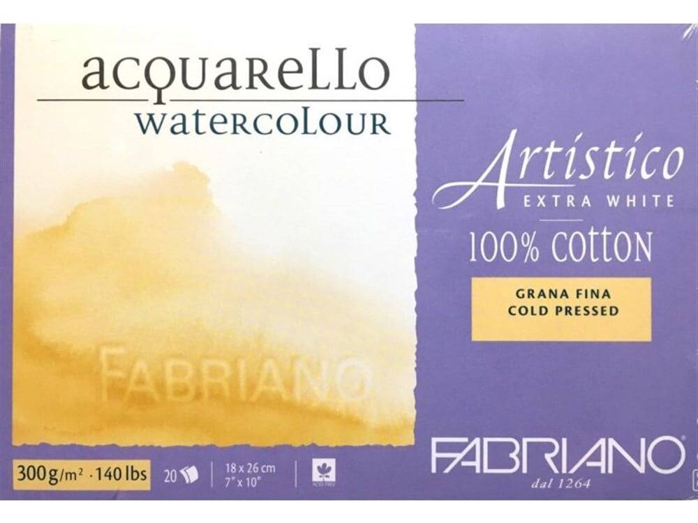Fabriano Artistico Suluboya Defteri Extra White Grana Fina C.Pressed 300gr, 18x26 cm 20 Sayfa