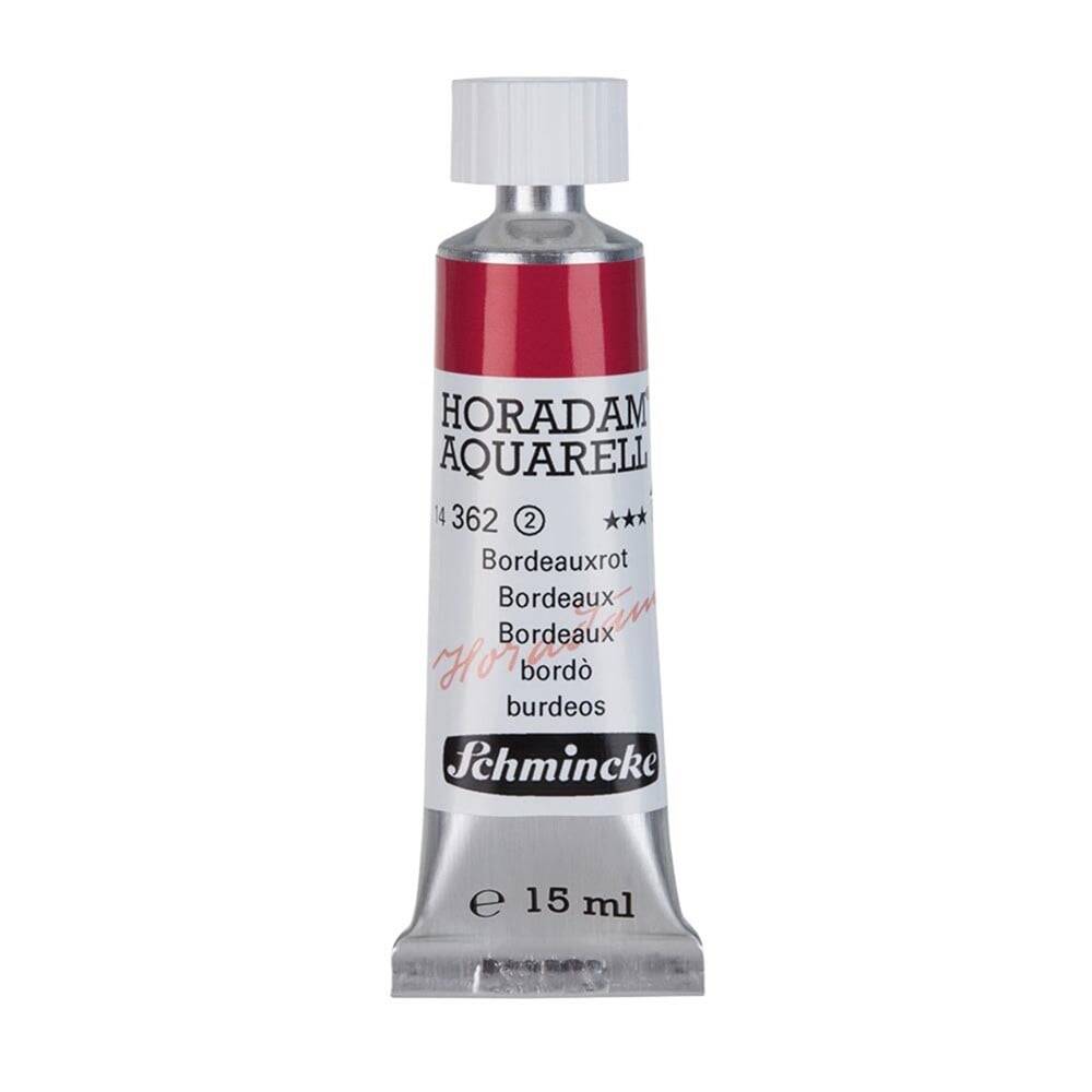 Seri 2 362 Bordeaux Finest Artist Serisi Suluboya Yeni, ideal hale getirilmiş ve genişletilmiş 140 çeşit: 139 canlı ve parlak, yoğun renk + öküz ödü: 100 renk değiştirmeyen ton, 35 yeni ton, 4 labaratuvar ortamında ideal hale getirilmiş ton ve hepsi de en üst düzey pigmentasyona sahip artist seviyesindedir. Serinin 112 çeşit tonu, olabilecek maksimum ışık dayanıklılığı ve kalıcılık özelliğine sahiptir (4 ve 5 yıldız seviyesi). En verimli ve canlı karıştırma sonuçlarını elde etmek için 95 tane tek bir pigmentten oluşan saf renk çeşidi. Herkesçe takdir edilen kalite: En yüksek randımanı elde etmek için suluboya tabletleri 4 defa sıvı boya ile doldurulup her seferinde kurumaya bırakılmak suretiyle üretilir. Bu nedenle tabletin içinde en yüksek oranda yoğun ve saf pigment bulunur. Horadam suluboyalarında bağlayıcı olarak kullanılan Arap zamkı en kaliteli üreticilerden özenle seçilmiştir. Palet üzerinde kuruyan suluboya tamamıyla tekrar kullanılabilir. Yüksek seviyede boya akışı kontrolü, en yumuşak suluboya kağıtları üzerinde dahi sağlanır. ‘Alman malıdır’ kalite standartlarını taşır. Tabletler ve tüpler aynı kalitede boya içeriğine sahiptir. 139 çeşit farklı renk, tam tablet, yarım tablet, 5 ml tüp ve 15 ml tüp olarak farklı seçeneklerle sunulmuştur. Horadam suluboyalarının kuruluşunun 125. yılında (2017), Schmincke labaratuvarlarında yıllardır süren araştırma ve geliştirme çalışmalarının bir sonucu olarak, Schmincke şirketi, Horadam serisini genişleterek ve mevcut boyaların kalite ve verimliliklerini arttırarak 140 çeşit renk seçeneğini değerli sanatseverlerin ilgisine sunmuştur. Yeni tür pigmentlerin yetenekleri, müşterilerimizin taleplerine cevap verme arzusu ve ham madde pazarındaki yeni imkanlar, Schmincke’nin Horadam suluboya serisini mükemmelleştirme ve genişletme çalışmasına ilham vermiştir.