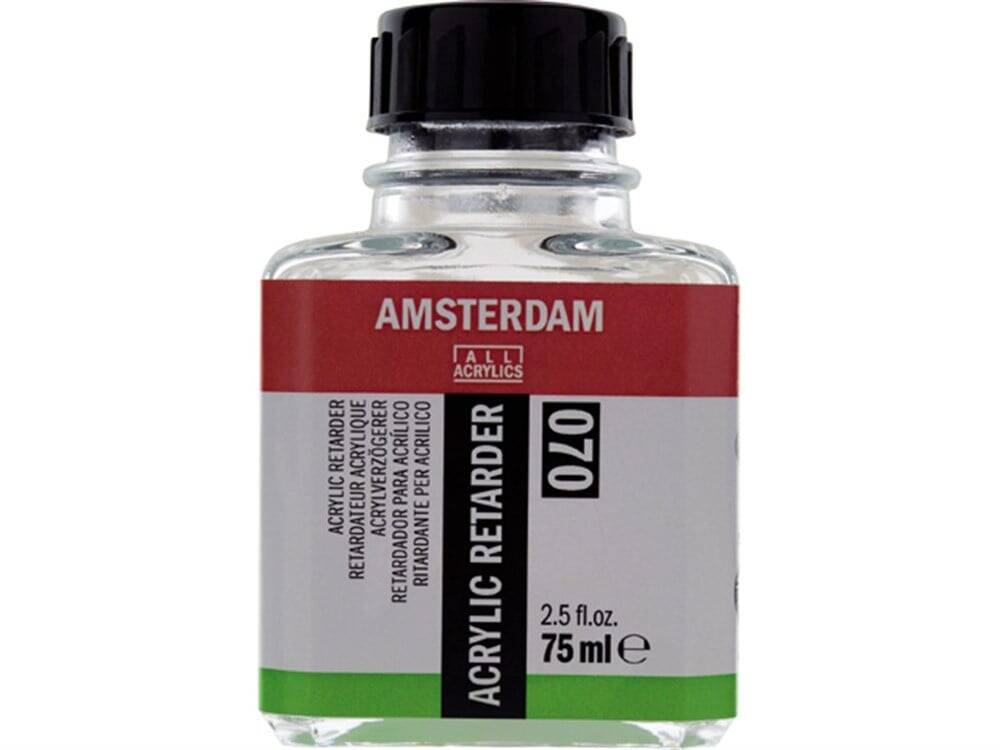 Yavaş yavaş buharlaşan polihidrik alkol içerir. Akrilik boyadan tamamen buharlaşır Az kullanılmalıdır, inceltilmiş boya% 5'ten fazla Amsterdam akrilik geciktirici içermemelidir 75 ml ve 250 ml olarak mevcuttur.