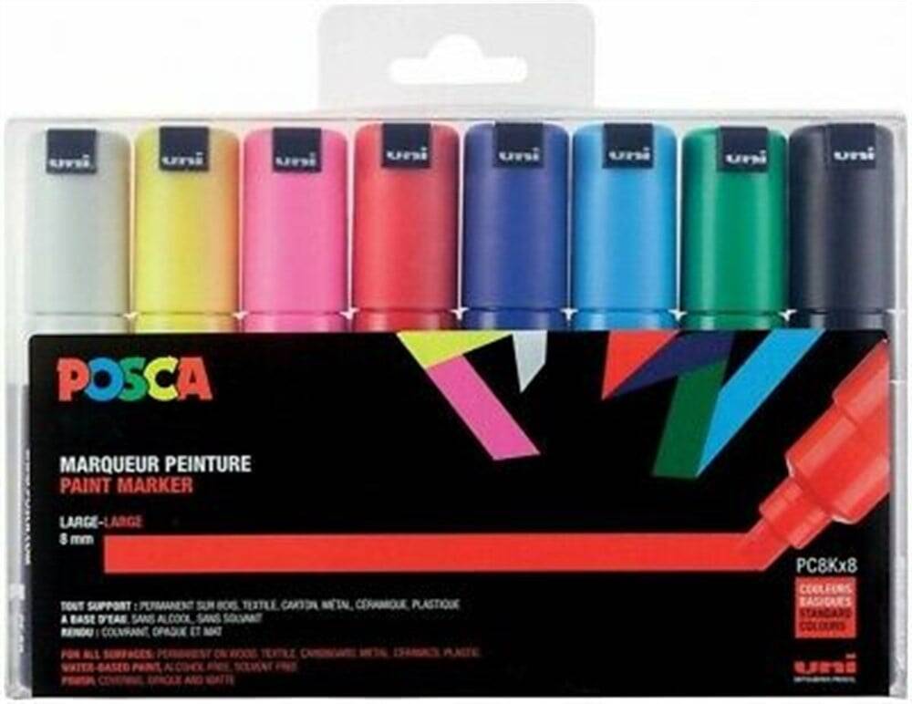 Uni Posca Pc-8K Acrylic Marker 8 mm Chisel Tip 7+1 Main Colors